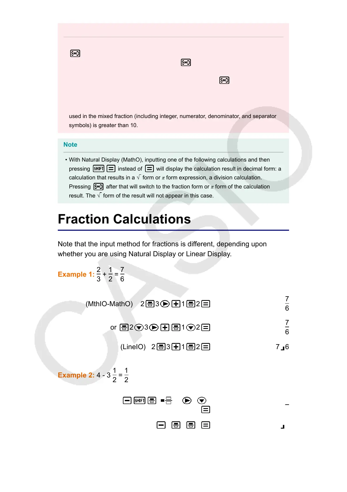• With Natural Display (MathO), inputting one of the following calculations and then