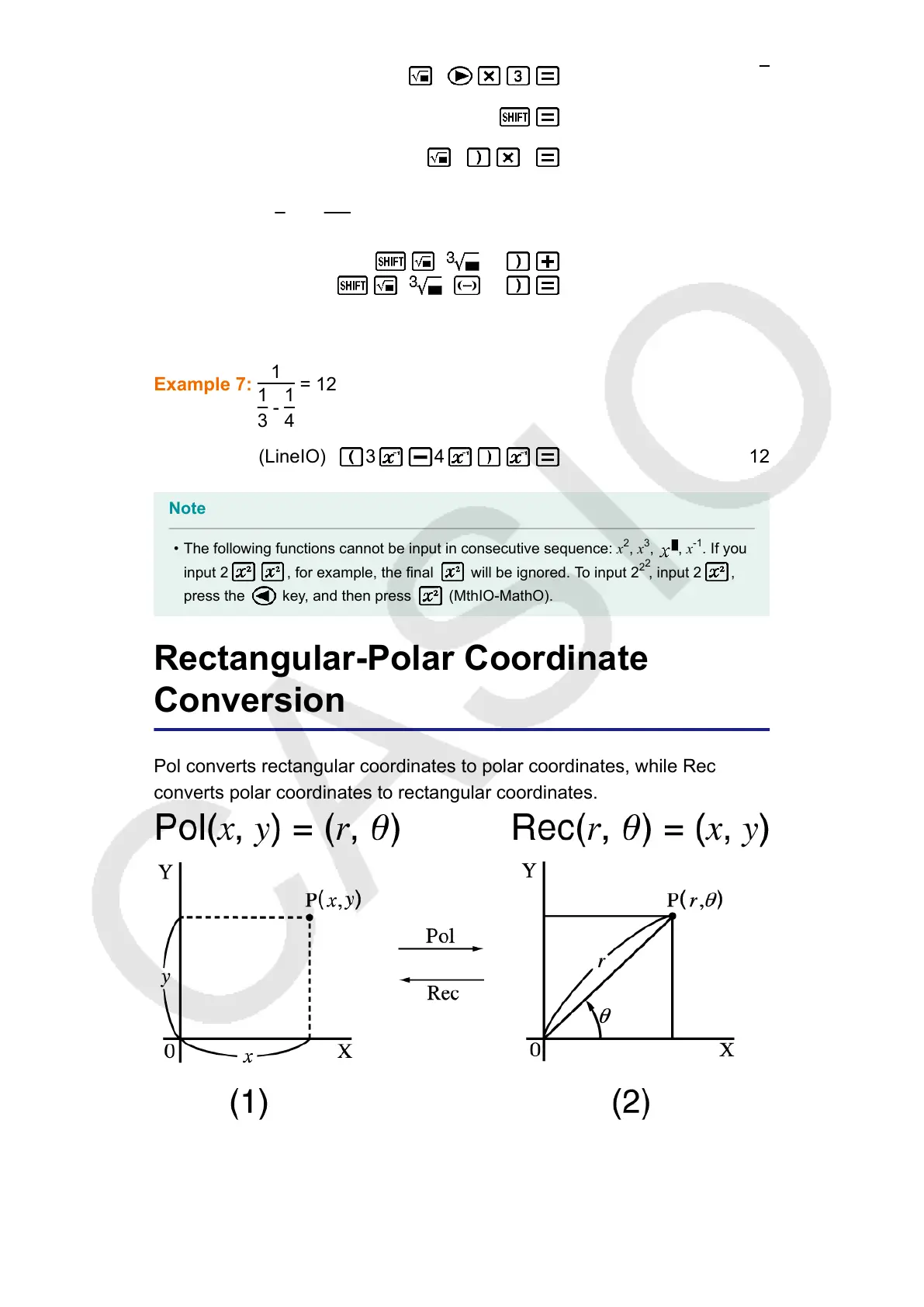 • The following functions cannot be input in consecutive sequence: x