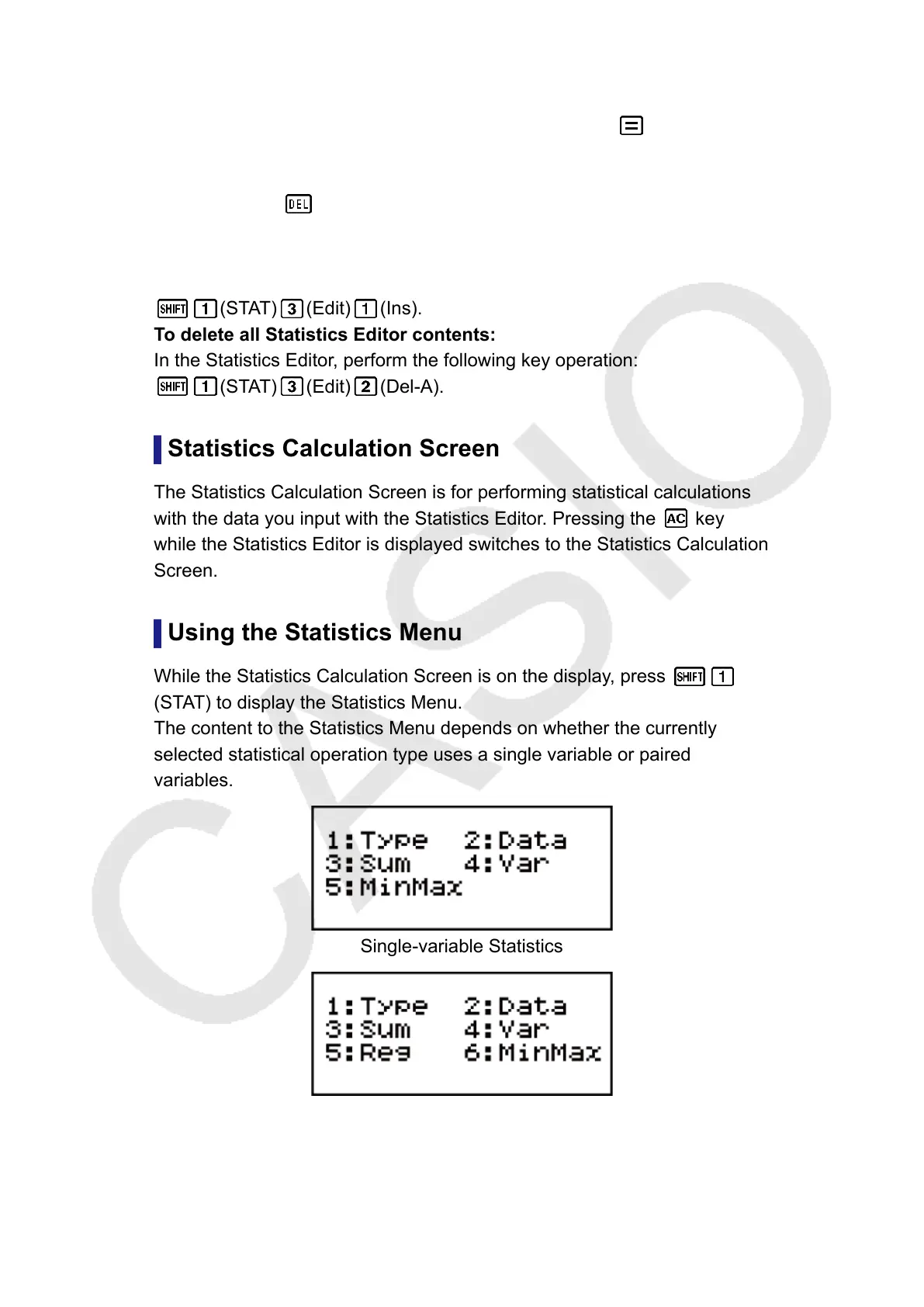 while the Statistics Editor is displayed switches to the Statistics Calculation