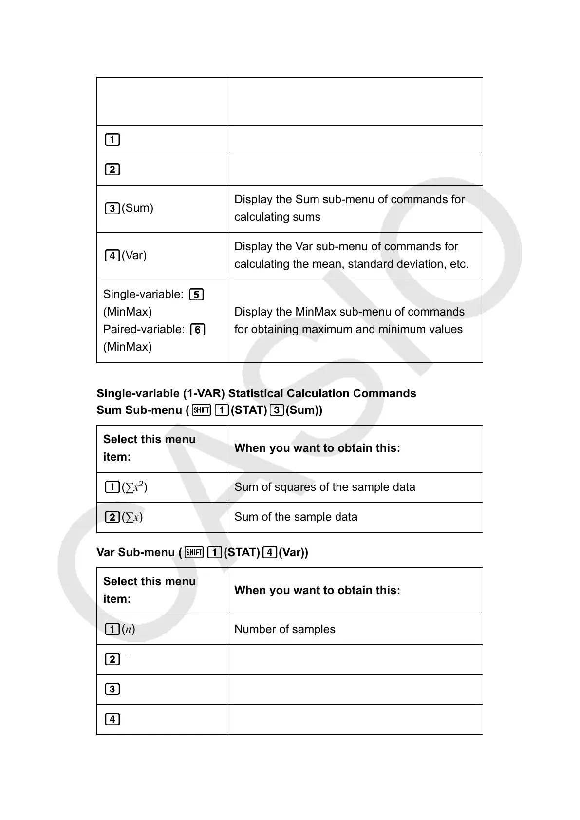 Var Sub-menu ( (STAT) (Var))