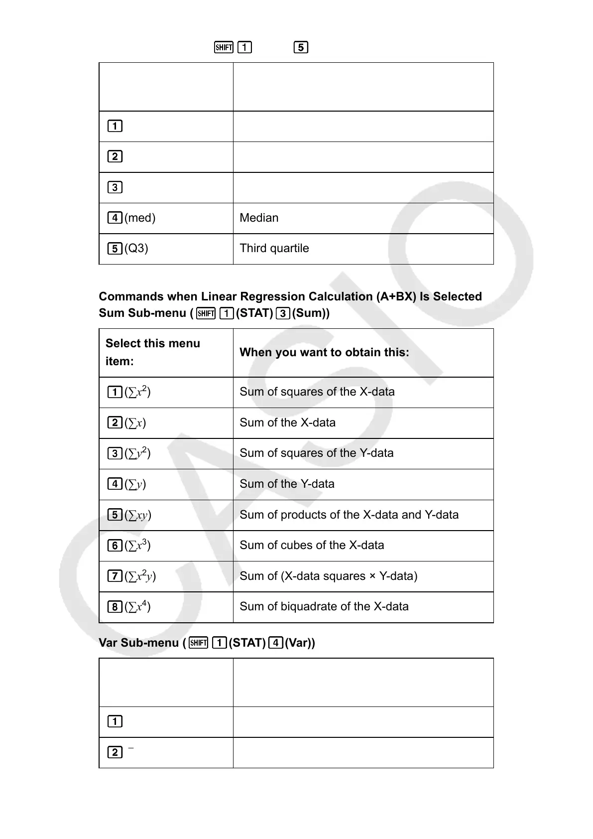 Commands when Linear Regression Calculation (A+BX) Is Selected