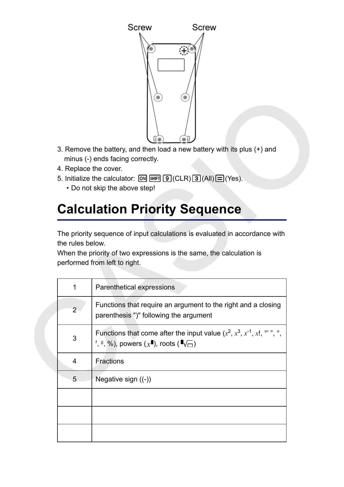 5. Initialize the calculator: (CLR) (All) (Yes).