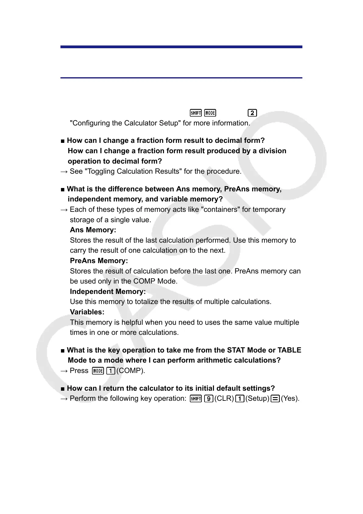 → Perform the following key operation: (CLR) (Setup) (Yes).