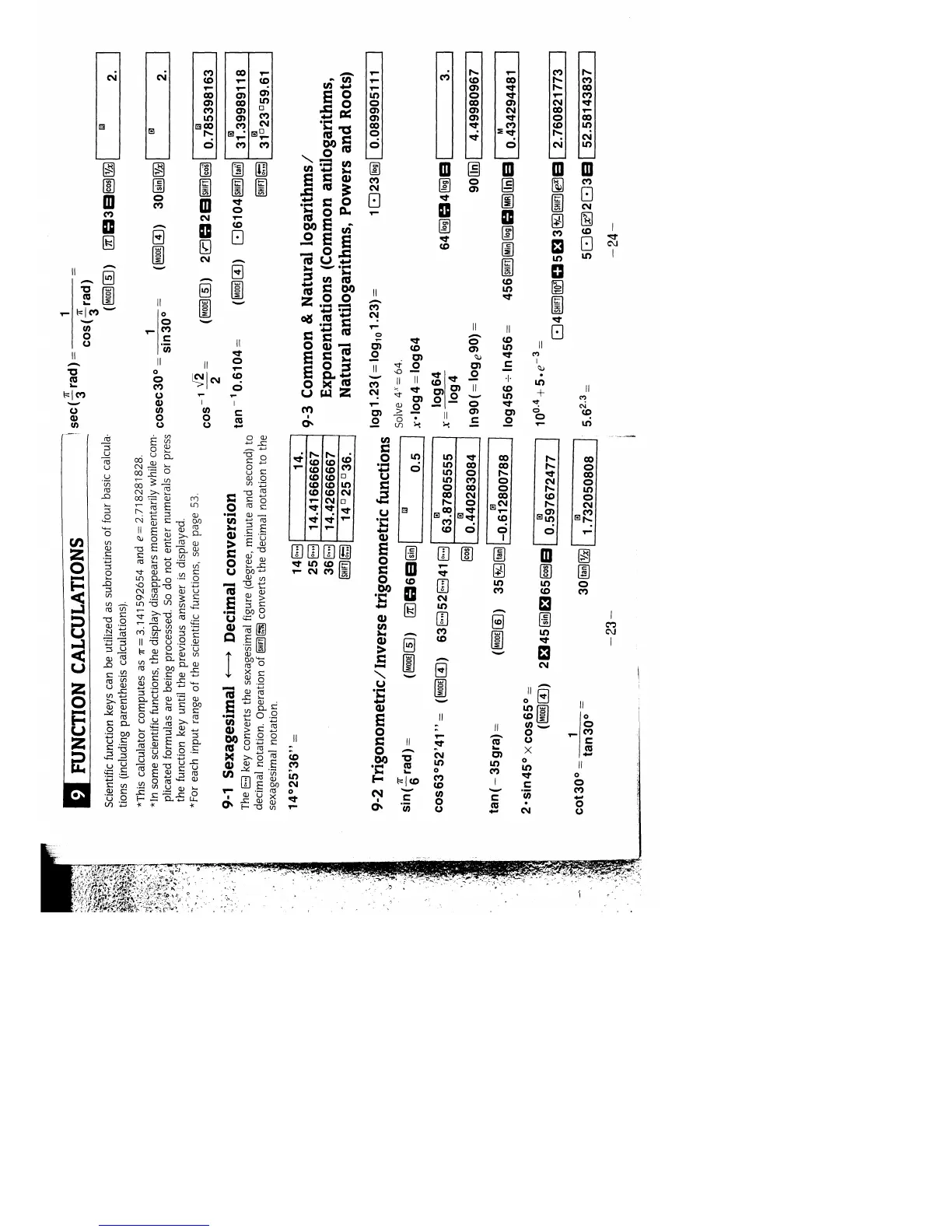 Casio fx-3900Pv - 9 FUNCTION CALCULATIONS; 9-1 Sexagesimal - Decimal Conversion; 9-2 Trigonometric;Inverse trigonometric functions