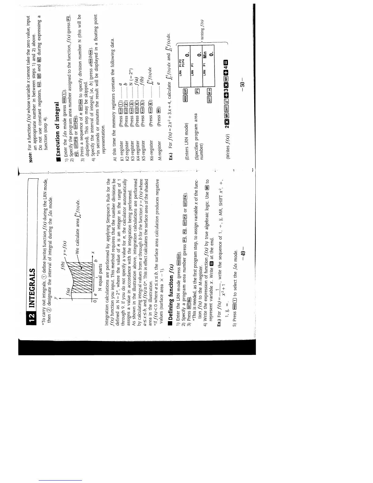 Casio fx-3900Pv - 12 INTEGRALS; Updating function f(x); Execution of integrals
