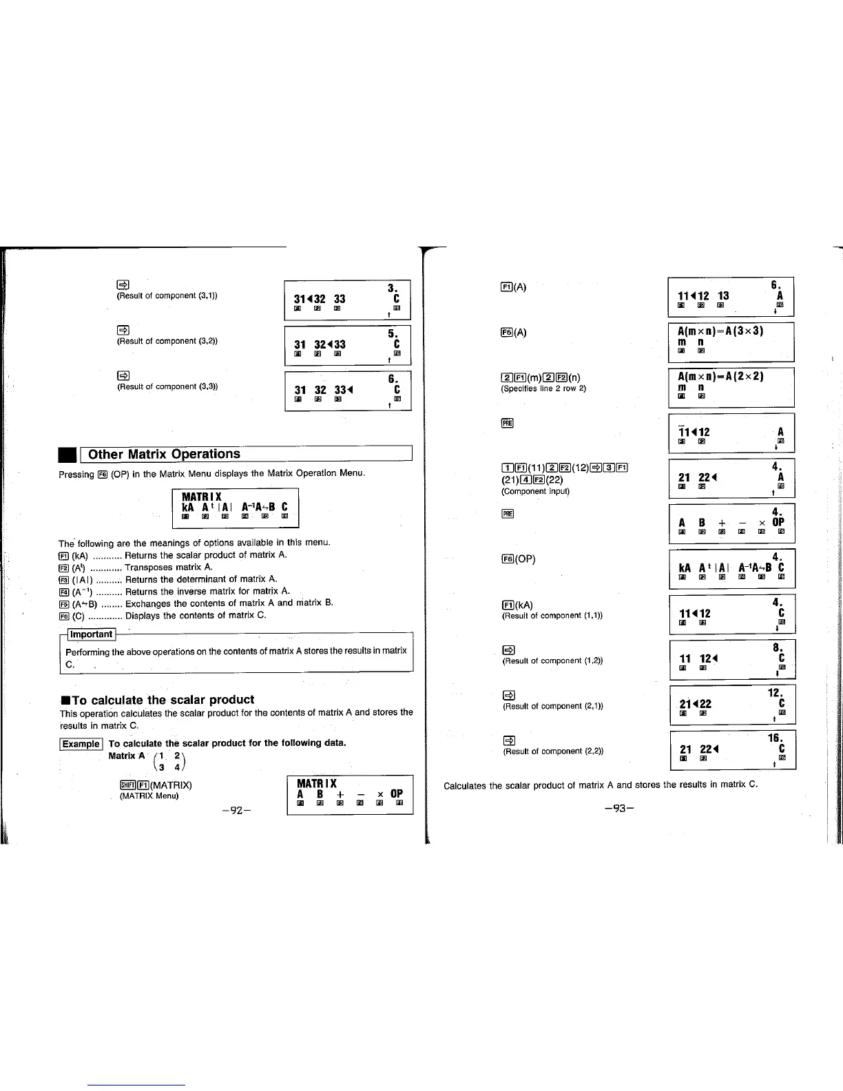 Casio fx-5500L - Other Matrix Operations; To Calculate the Scalar Product