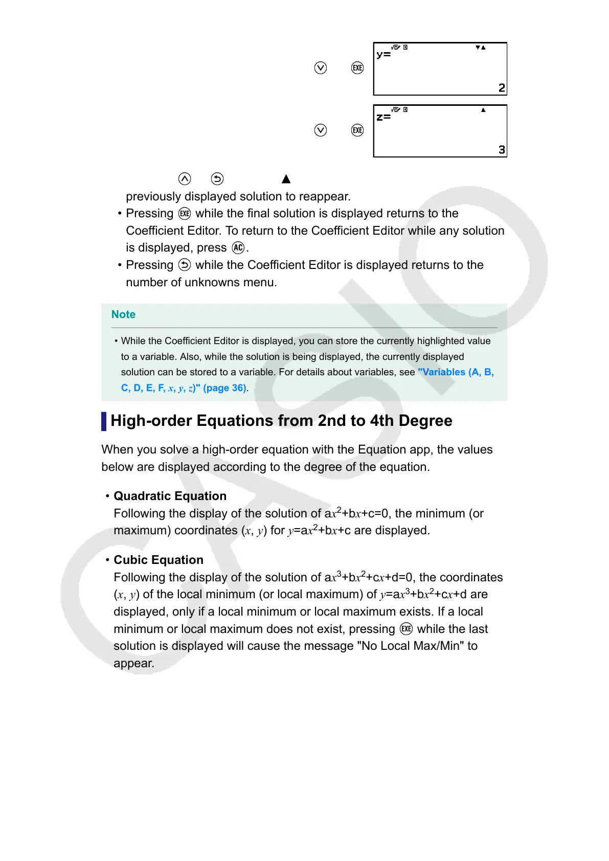 solution can be stored to a variable. For details about variables, see "Variables (A, B,