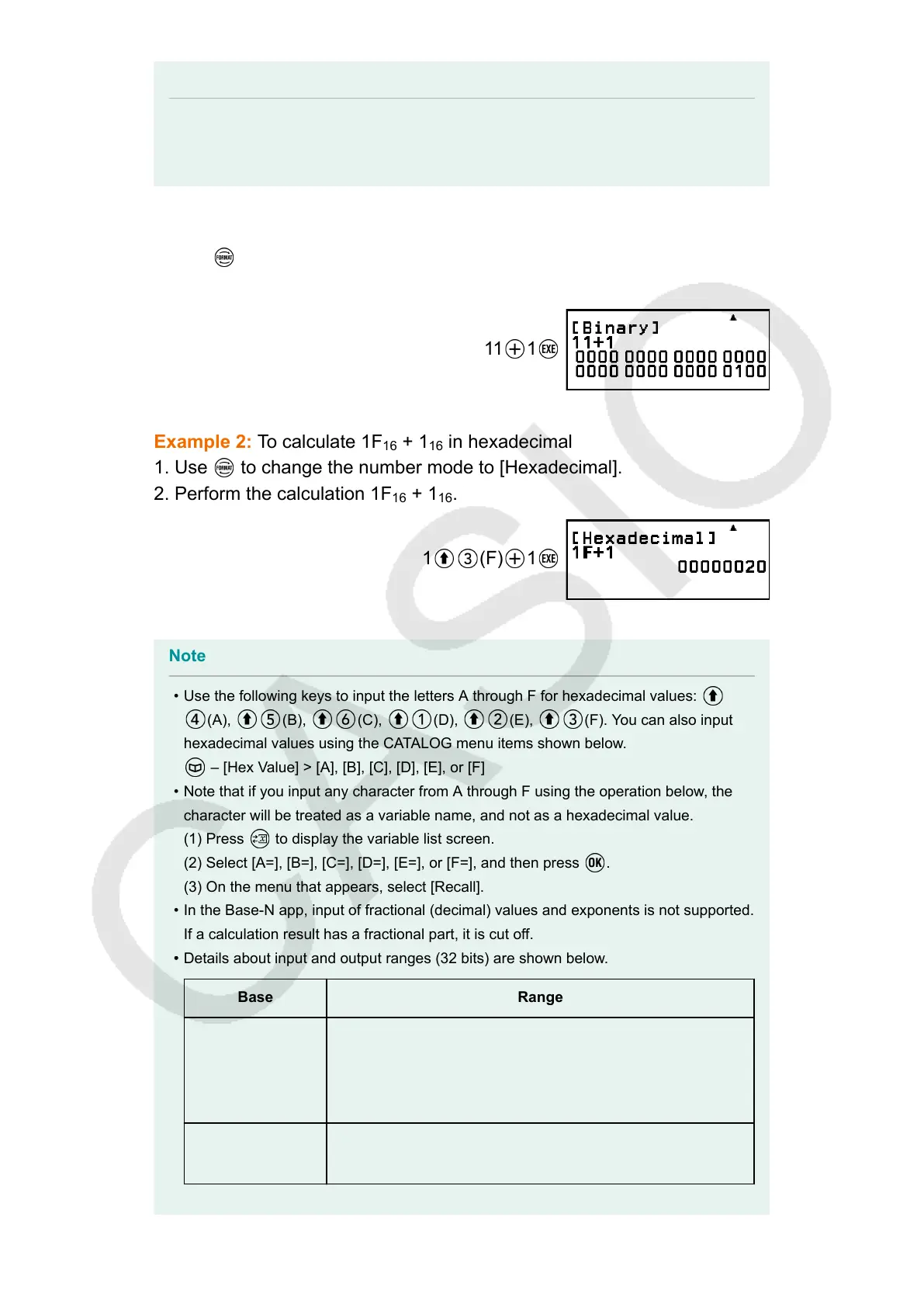 • In the Base-N app, input of fractional (decimal) values and exponents is not supported.