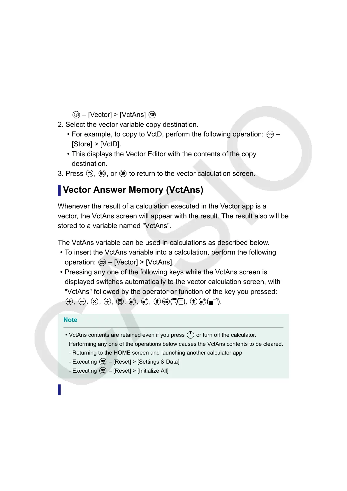 Performing any one of the operations below causes the VctAns contents to be cleared.