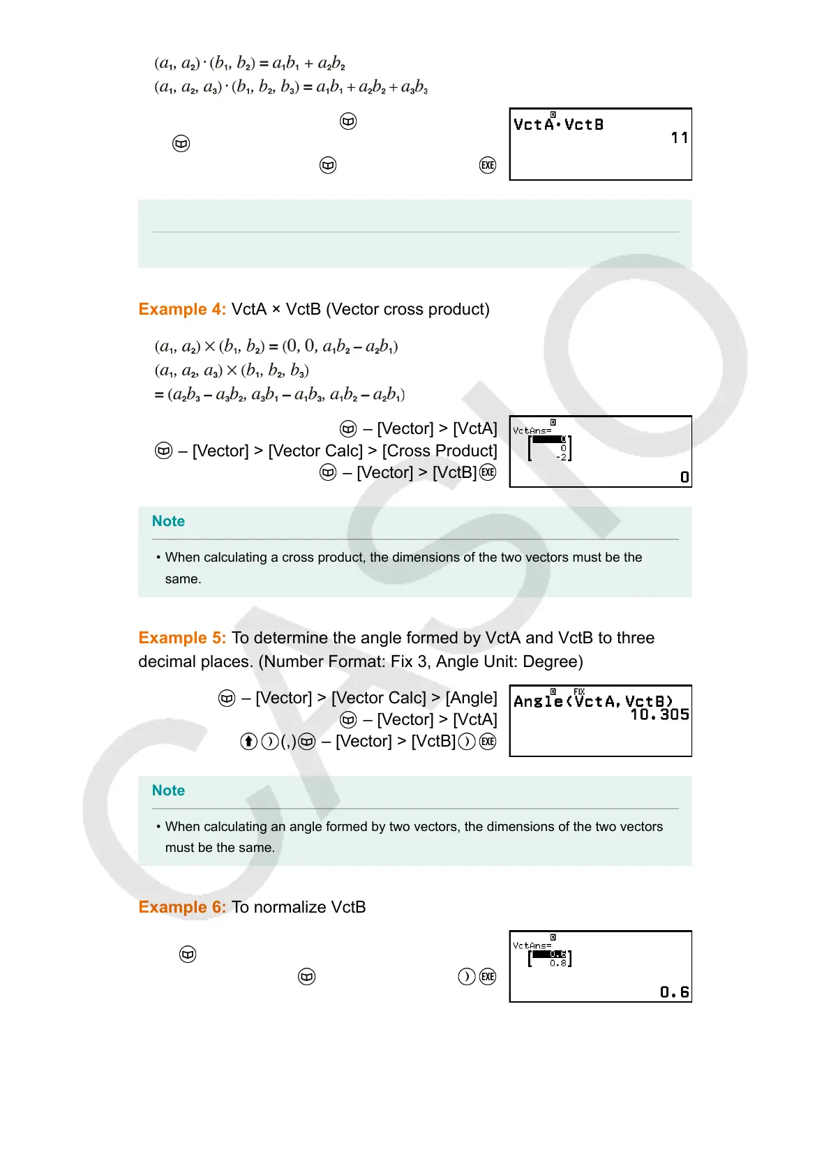 • When calculating an angle formed by two vectors, the dimensions of the two vectors