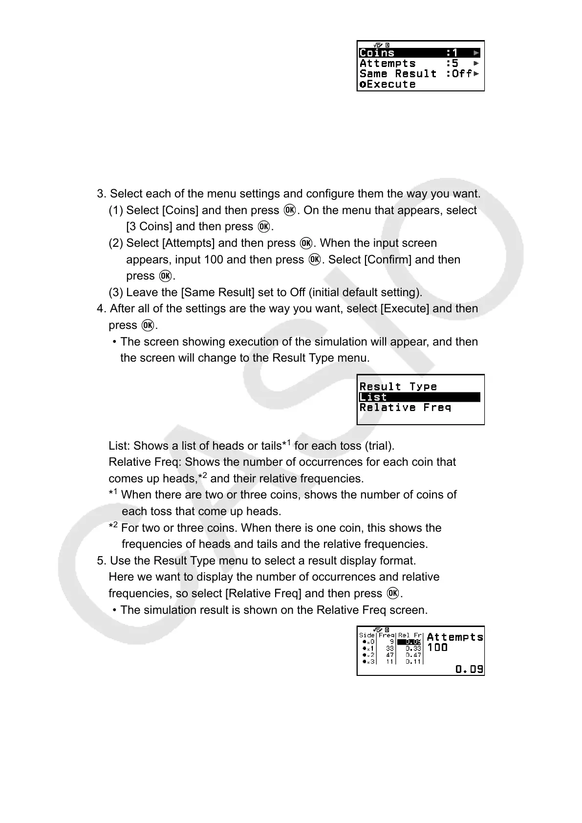 For details about the simulation result screen, see "Coin Toss Result