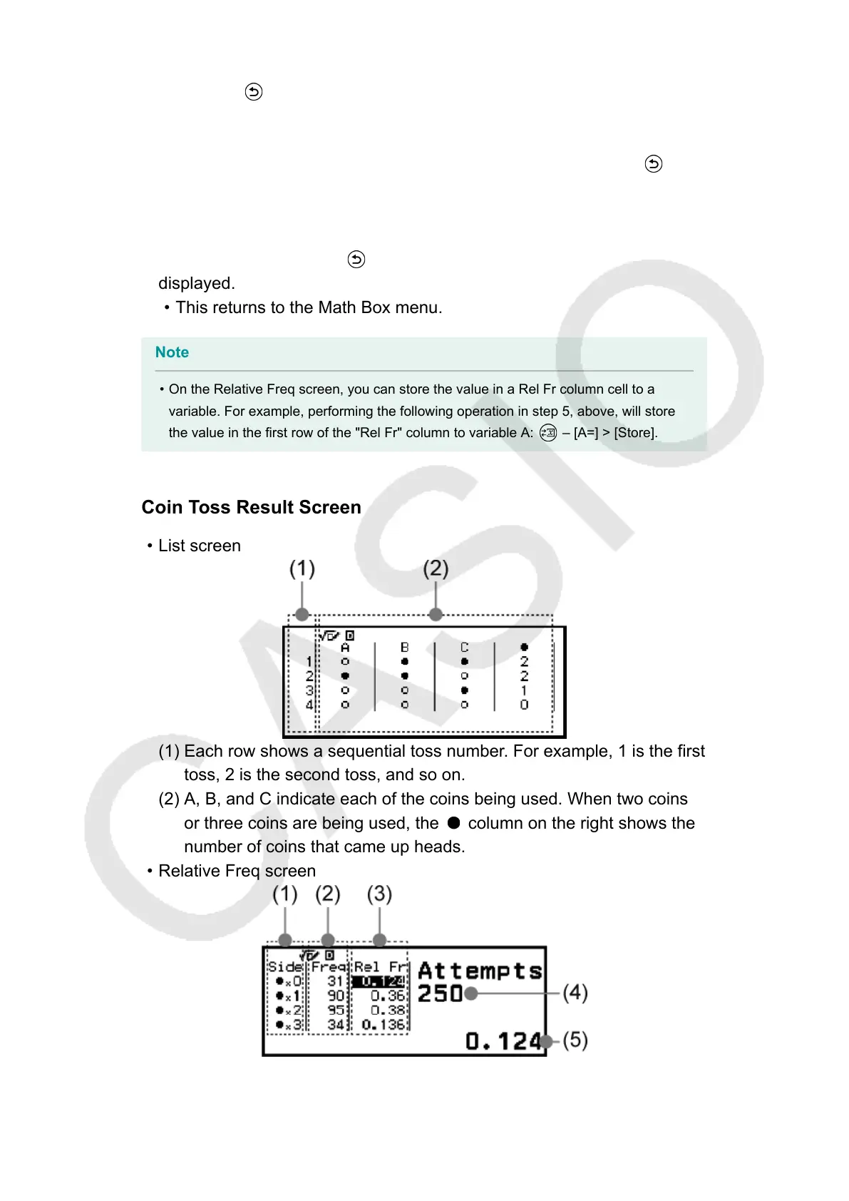 • On the Relative Freq screen, you can store the value in a Rel Fr column cell to a
