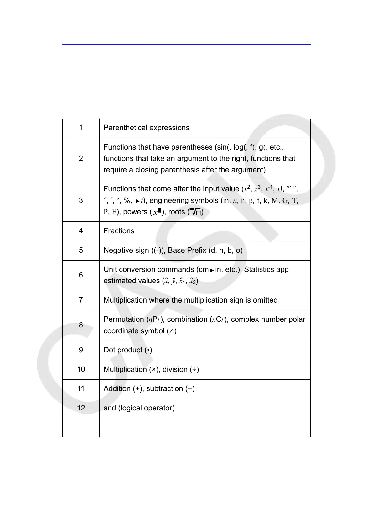 Functions that have parentheses (sin(, log(, f(, g(, etc.,