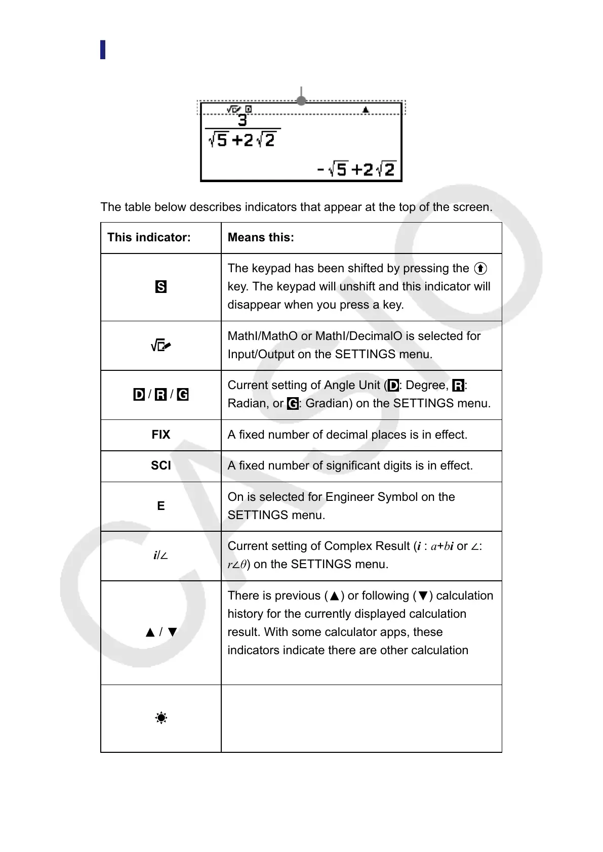 Current setting of Angle Unit ( : Degree, :