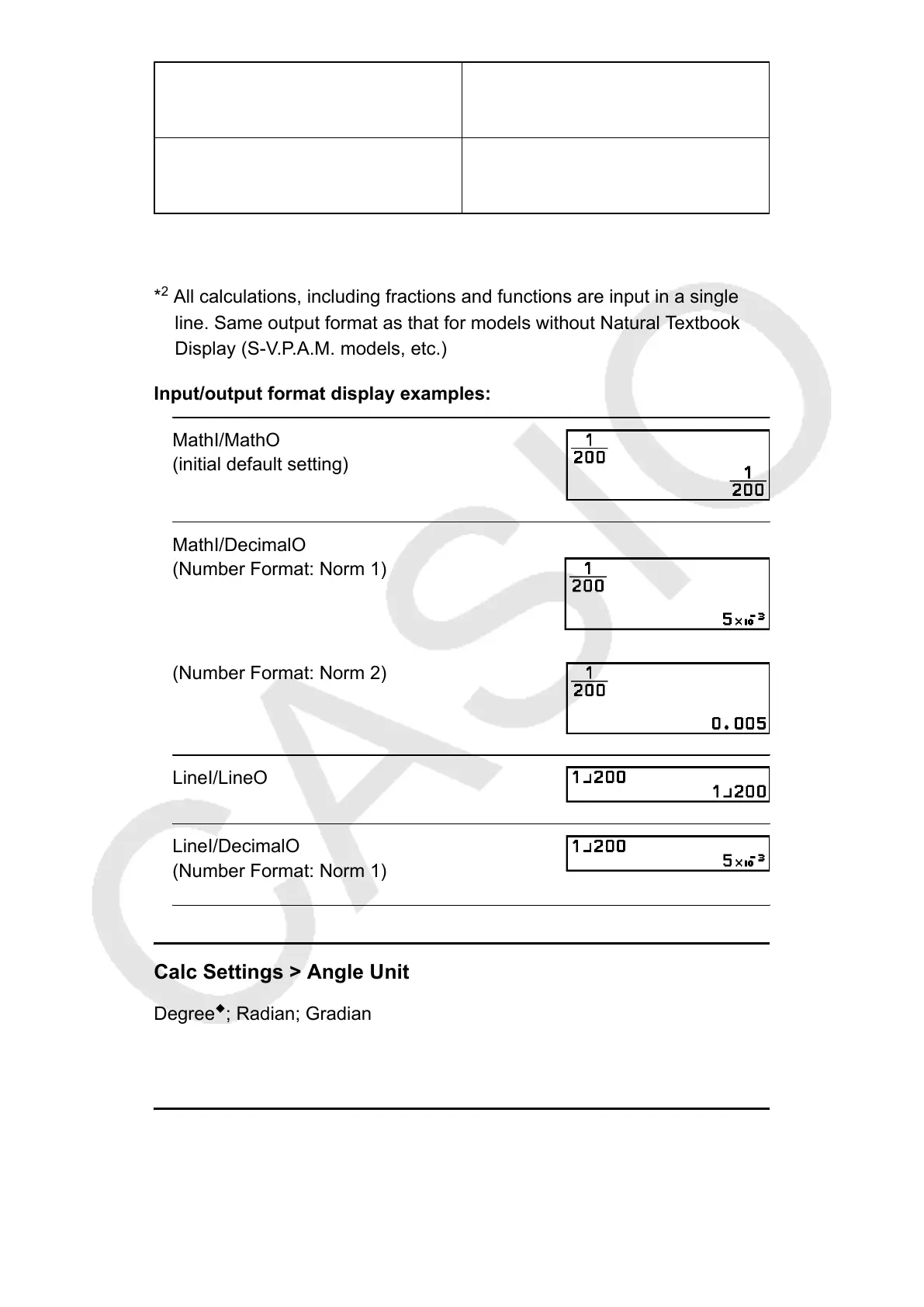 Specifies degree, radian or gradian as the angle unit for value input and
