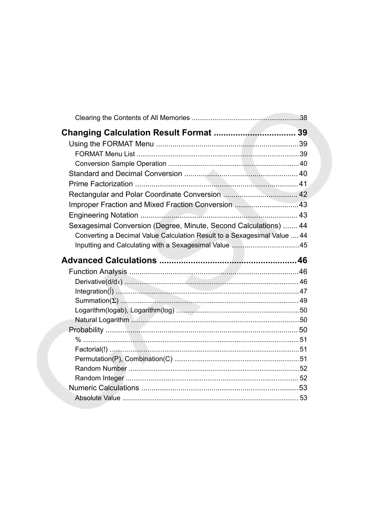 Angle Unit, Polar/Rectangular Coordinate, Sexagesimal ..................... 54