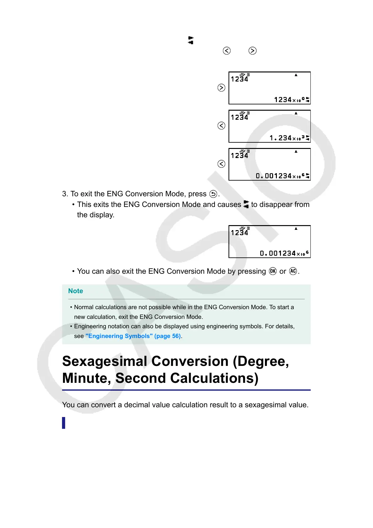 • Normal calculations are not possible while in the ENG Conversion Mode. To start a