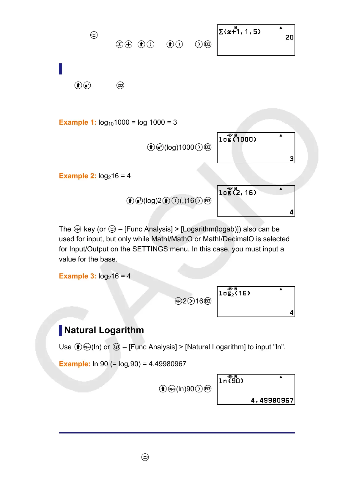 The key (or – [Func Analysis] > [Logarithm(logab)]) also can be