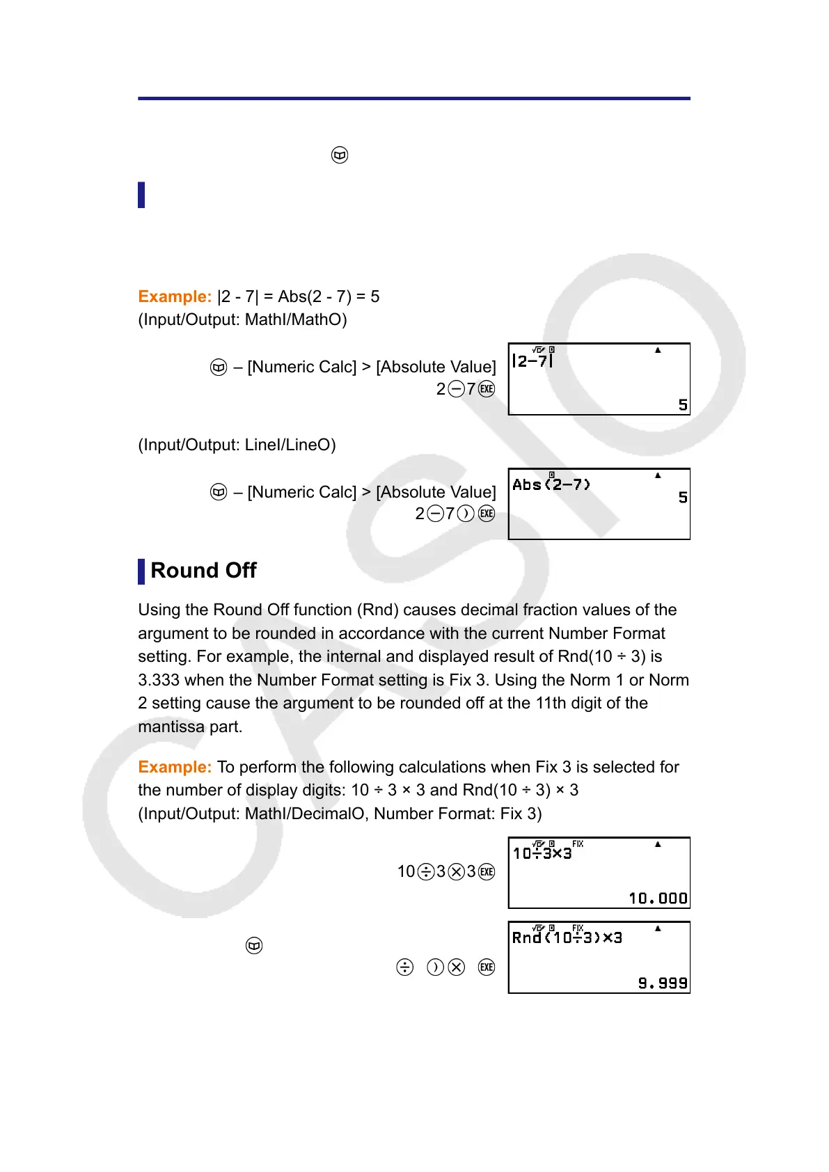 the number of display digits: 10 ÷ 3 × 3 and Rnd(10 ÷ 3) × 3