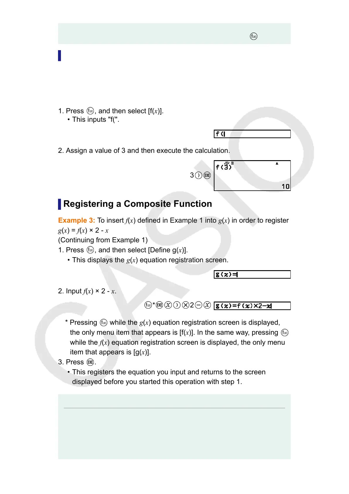 * Pressing while the g(x) equation registration screen is displayed,