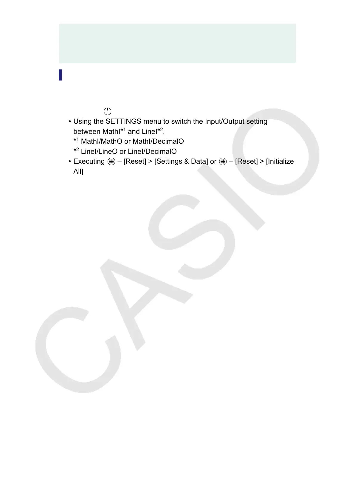 • Executing – [Reset] > [Settings & Data] or – [Reset] > [Initialize
