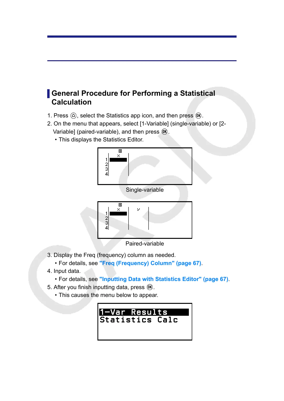 • For details, see "Inputting Data with Statistics Editor" (page 67).
