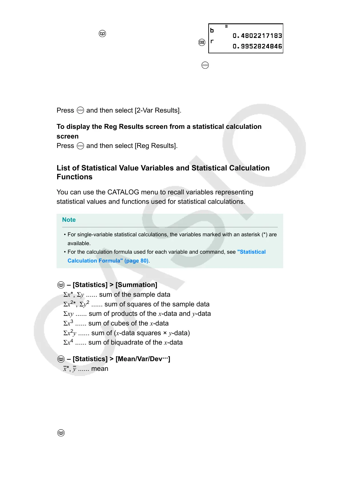 • For single-variable statistical calculations, the variables marked with an asterisk (*) are