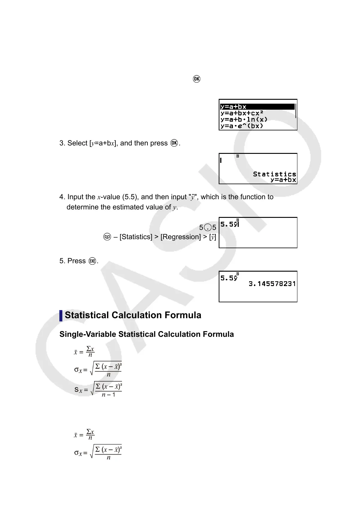 Example 9: To determine the estimated value for y when x = 5.5 in the