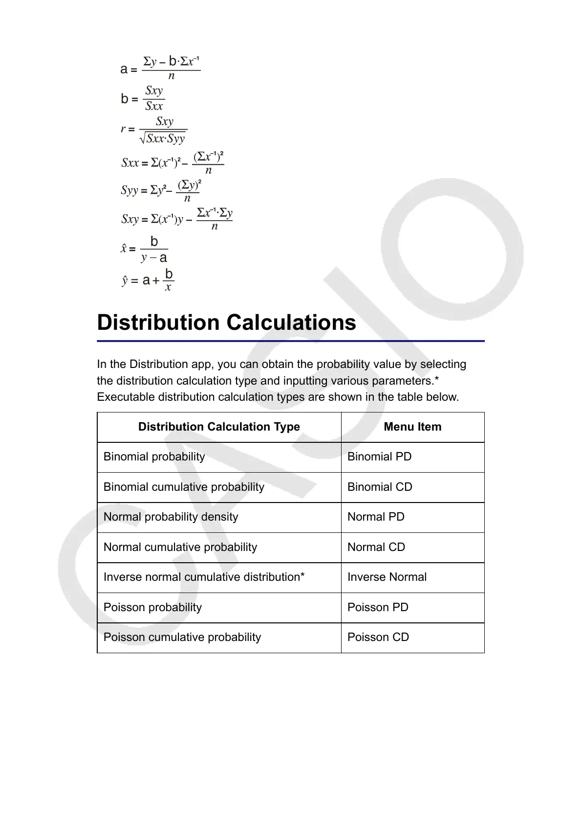 Executable distribution calculation types are shown in the table below.