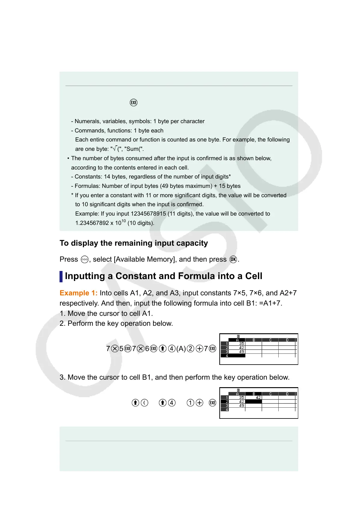 • A maximum of 49 bytes can be input into a cell (number of bytes before the input is