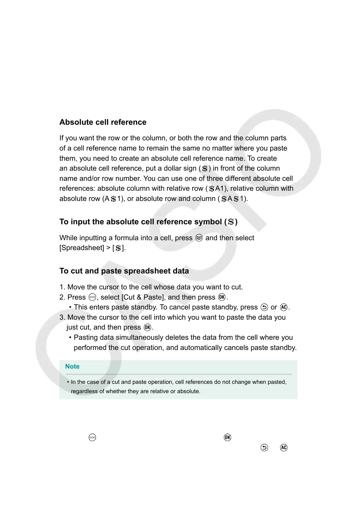 • In the case of a cut and paste operation, cell references do not change when pasted,