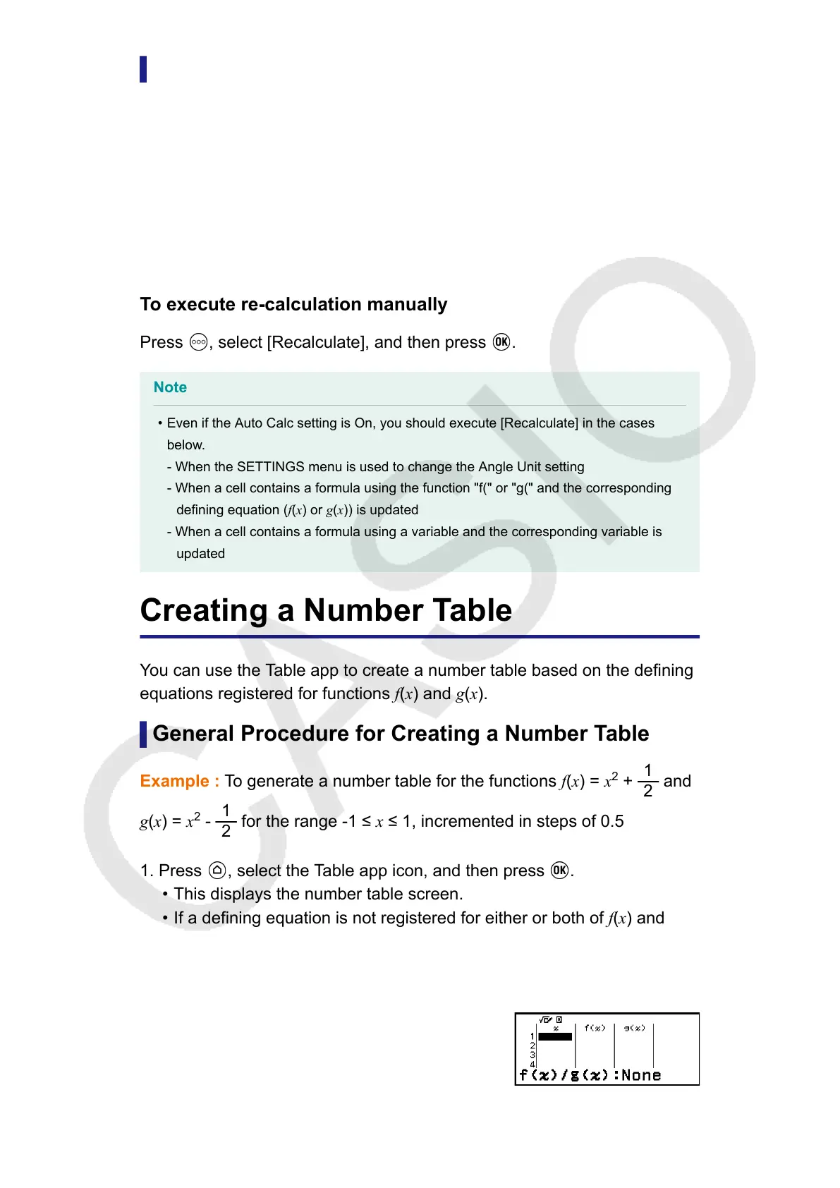 • Even if the Auto Calc setting is On, you should execute [Recalculate] in the cases