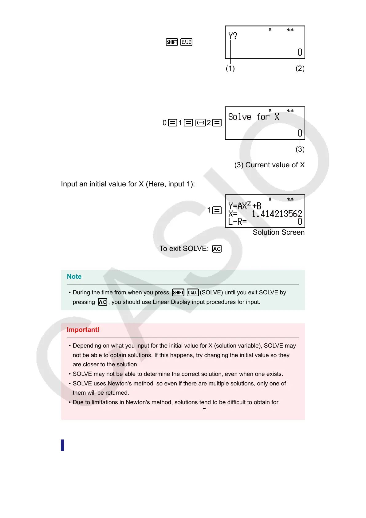 • During the time from when you press (SOLVE) until you exit SOLVE by