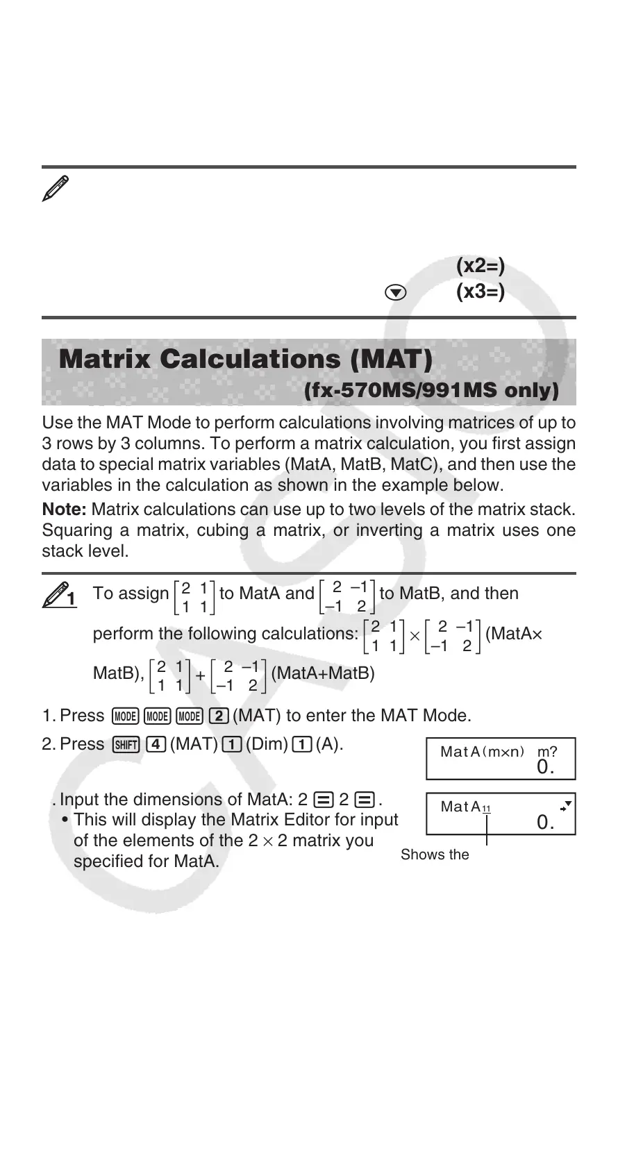 3. Input the dimensions of MatA: 2 = 2 =.