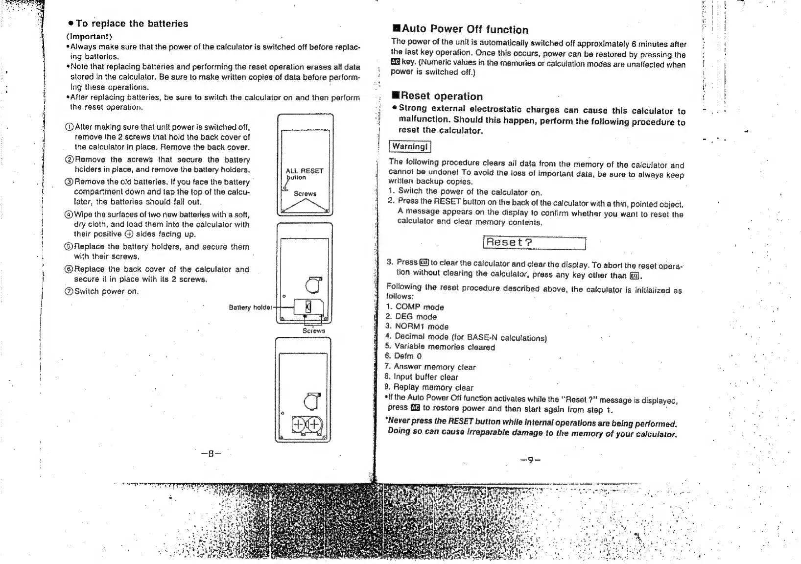Casio fx-6200G - Power off Function