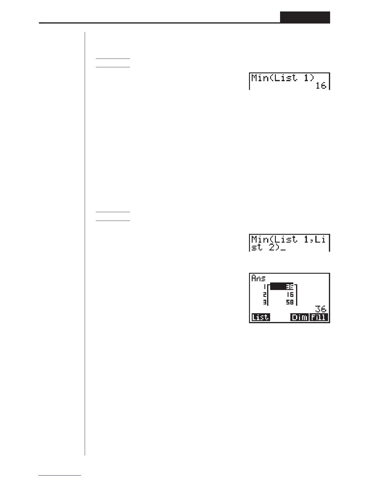 Example To find the minimum value in List 1 (36, 16, 58, 46, 56)