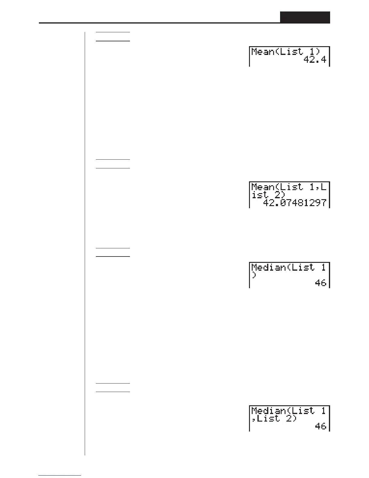 Example To calculate the mean of values in List 1 (36, 16, 58, 46, 56), whose