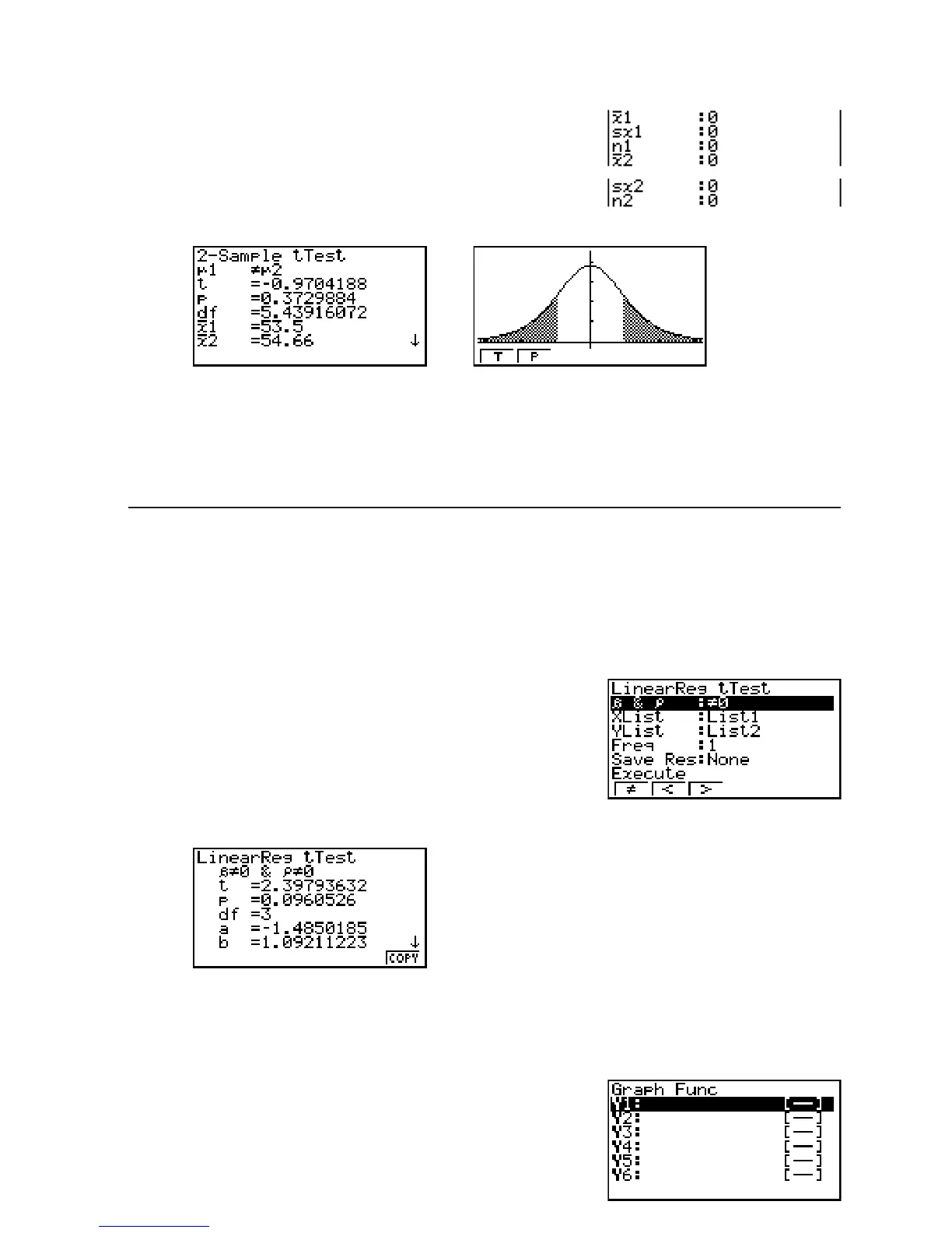 Pressing (COPY) while a calculation result is on the display copies the regression formula