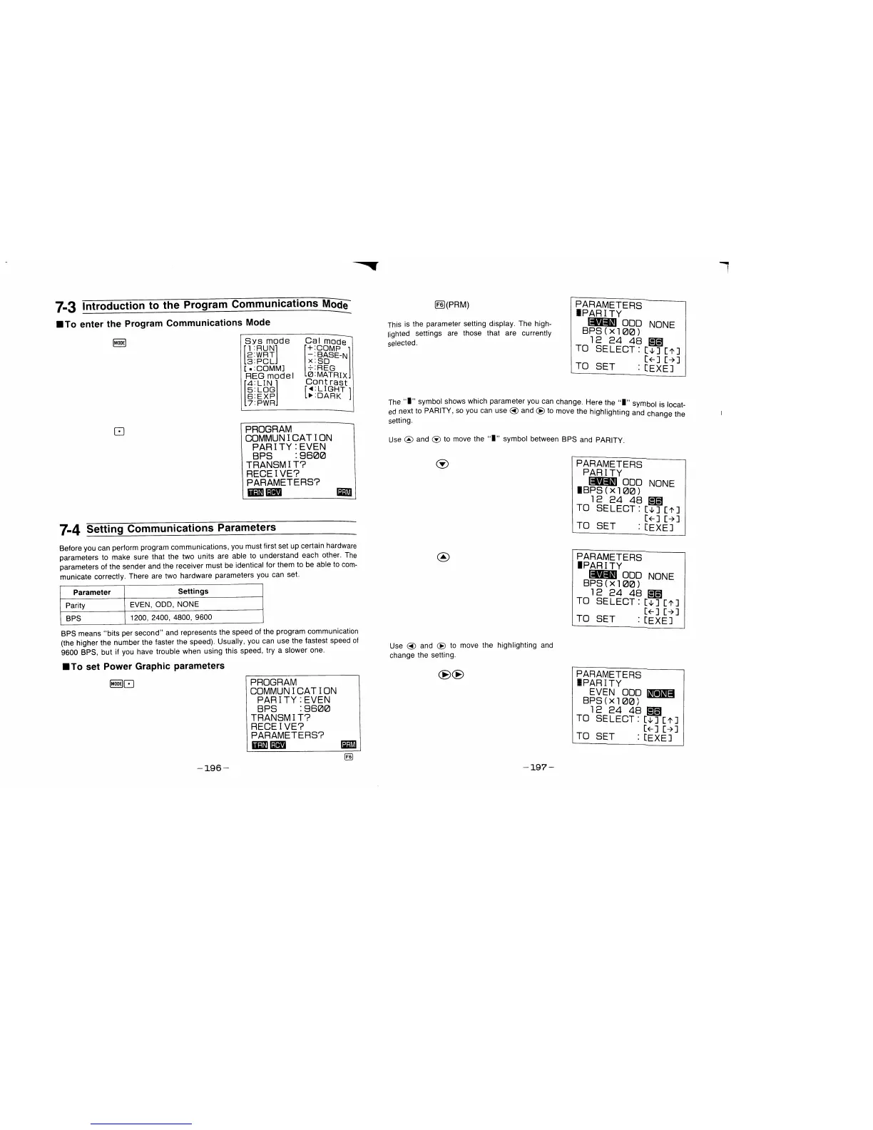 Casio FX-7700GB - 7-3 Introduction to the Program Communications Mode; 7-4 Setting Communications Parameters