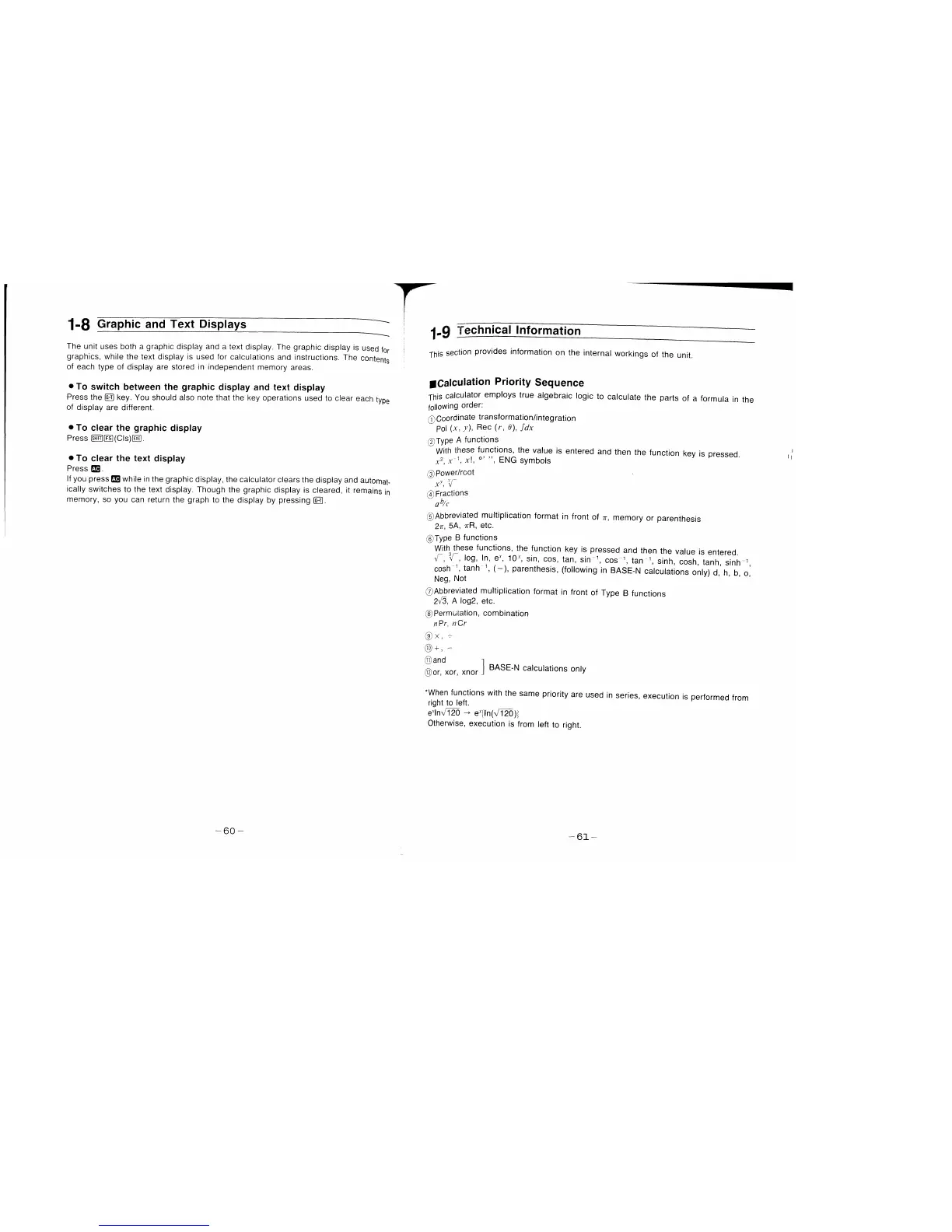 Casio FX-7700GB - 1-8 Graphic and Text Displays; 1-9 Technical Information