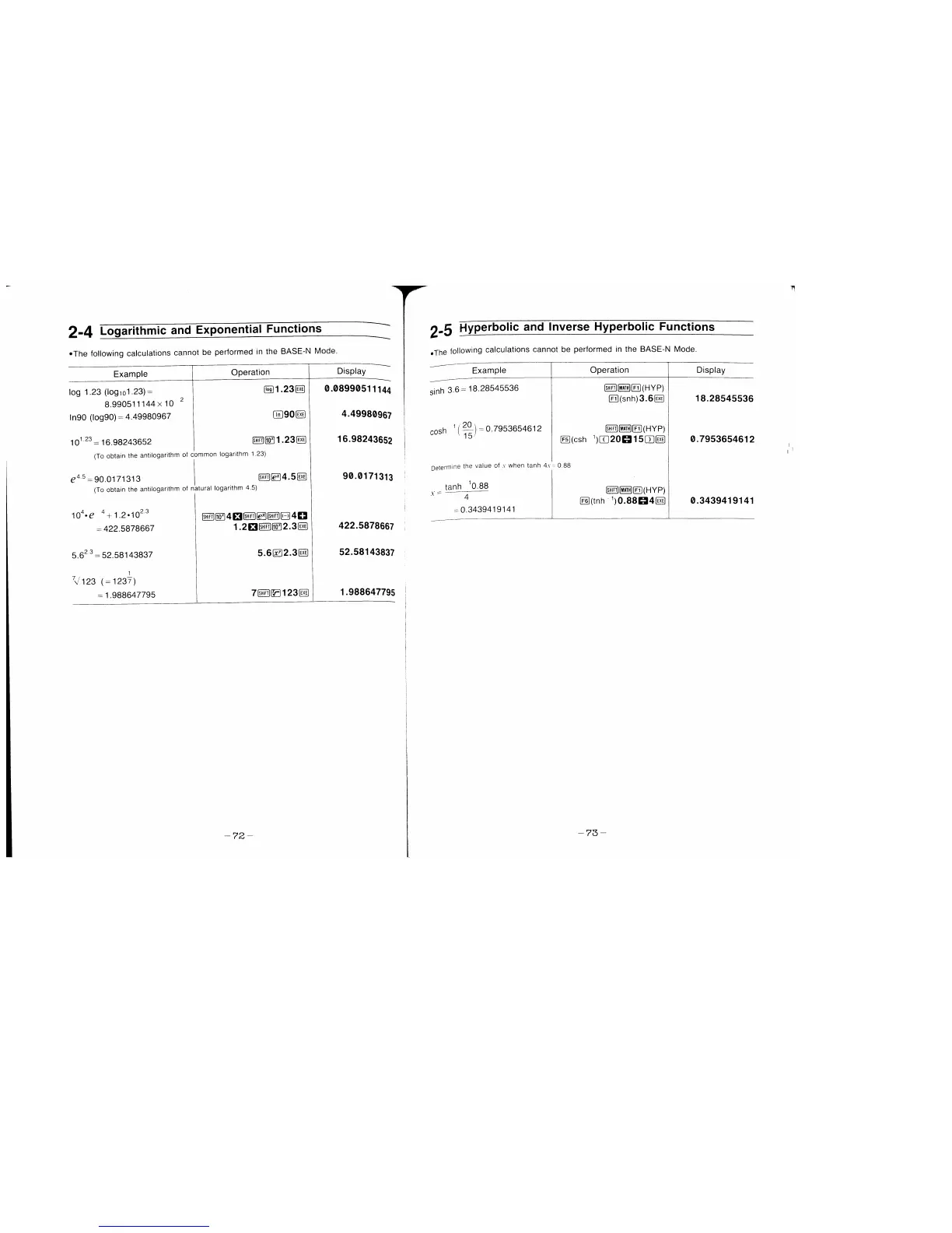 Casio FX-7700GB - 2-4 Logarithmic and Exponential Functions; 2-5 Hyperbolic and Inverse Hyperbolic Functions