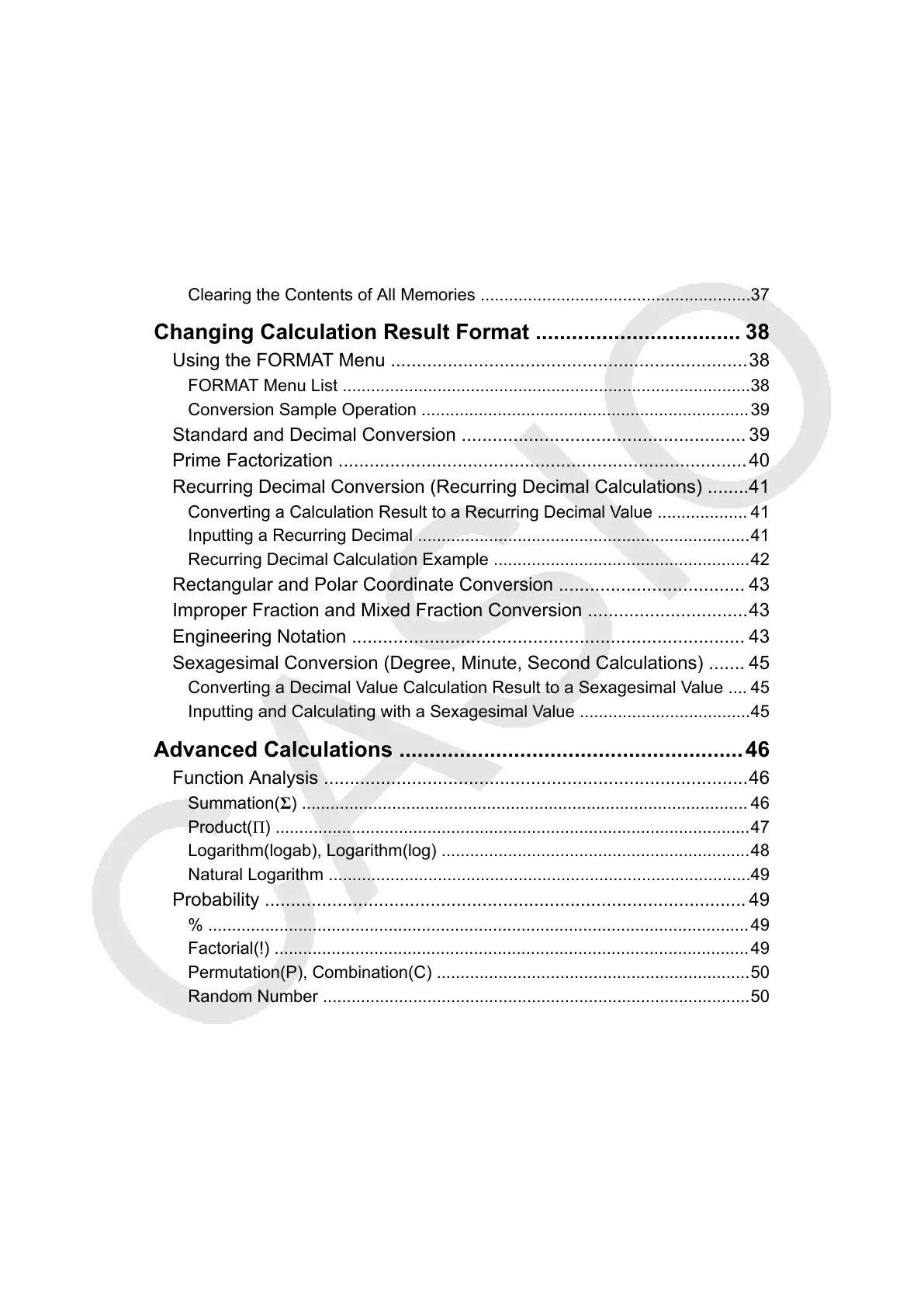 Answer Memory (Ans) / Previous Answer Memory (PreAns) ...................... 33