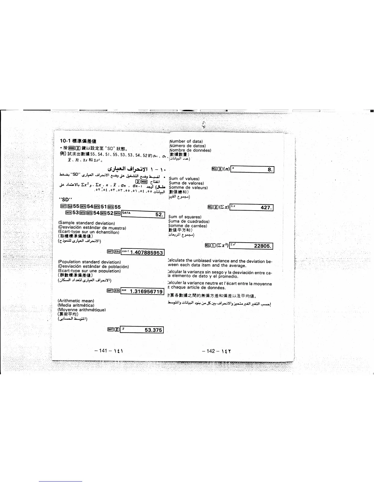 Casio FX-85SA - Sample Standard Deviation; Population Standard Deviation; Arithmetic Mean; Sum of Values