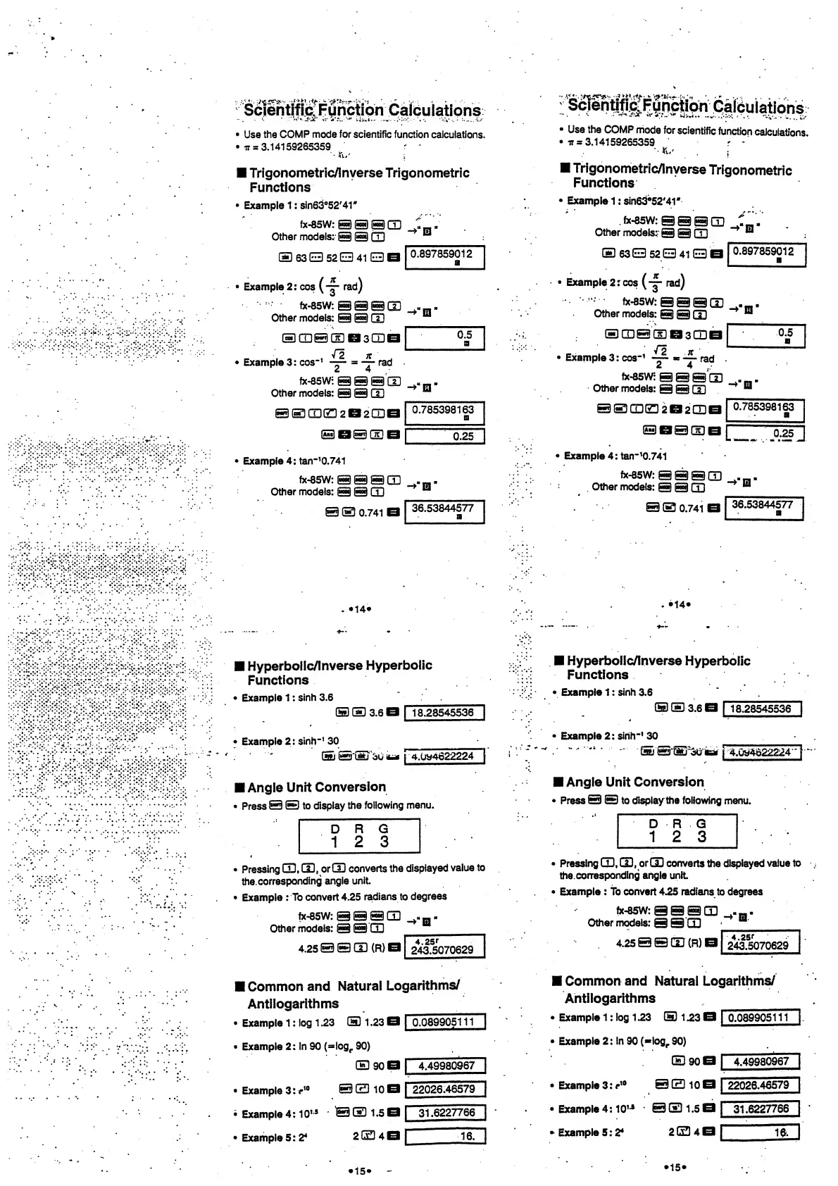 Casio fx-85WA - Scientific Function Calculations; Trigonometric, Hyperbolic, and Logarithm Functions