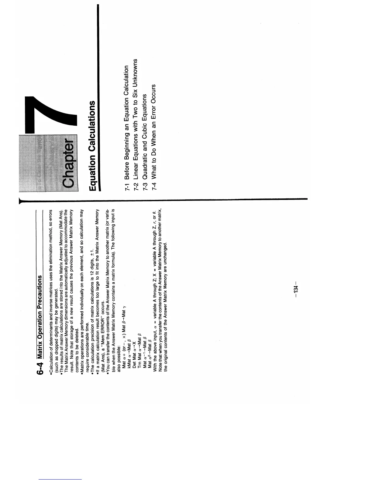 Casio FX-9700GE - 6-4 Matrix Operation Precautions; Chapter 7 Equation Calculations