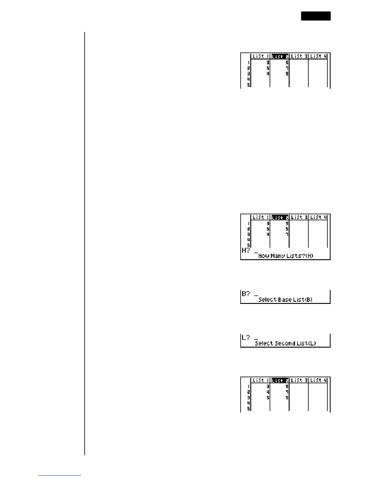 4. In response to the “Select Second List (L)” prompt, input the number of the list