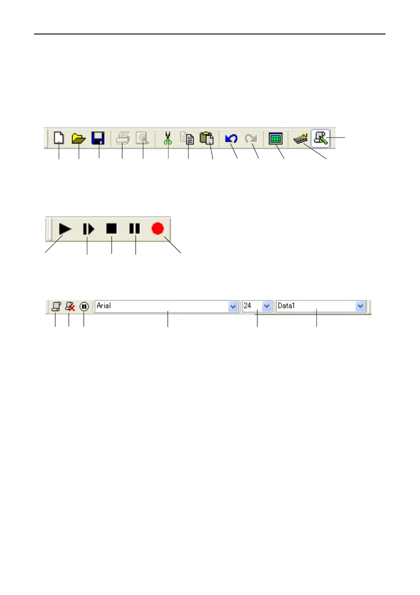 • The toolbar buttons correspond to menu bar commands. See the section of this manual that