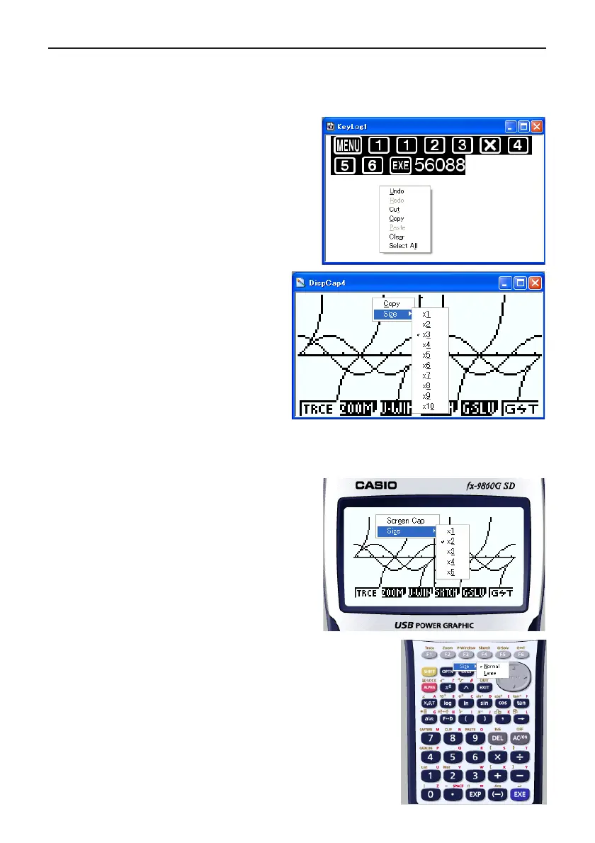 • Right-clicking the mouse displays one of the shortcut menus shown below.