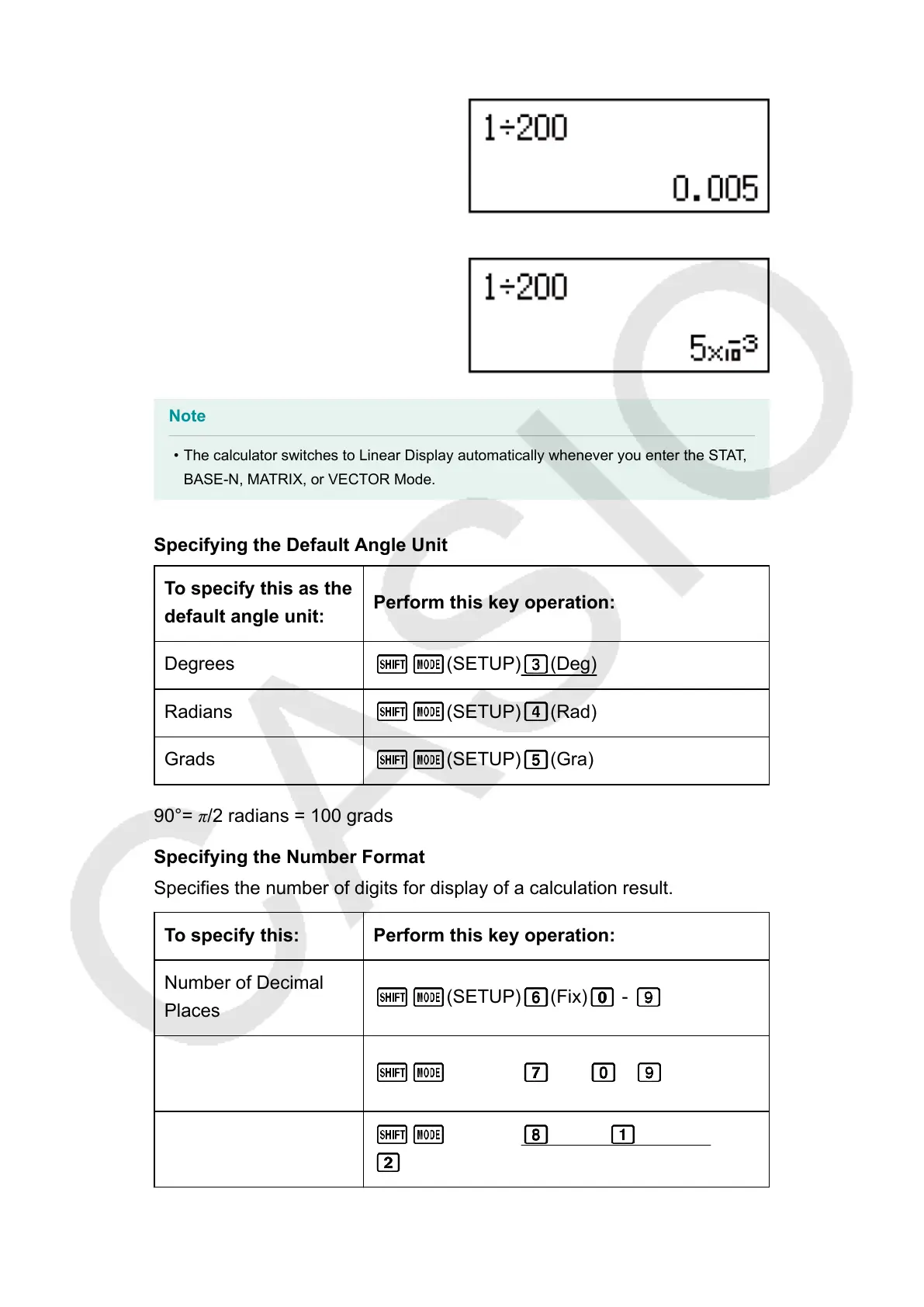 • The calculator switches to Linear Display automatically whenever you enter the STAT,