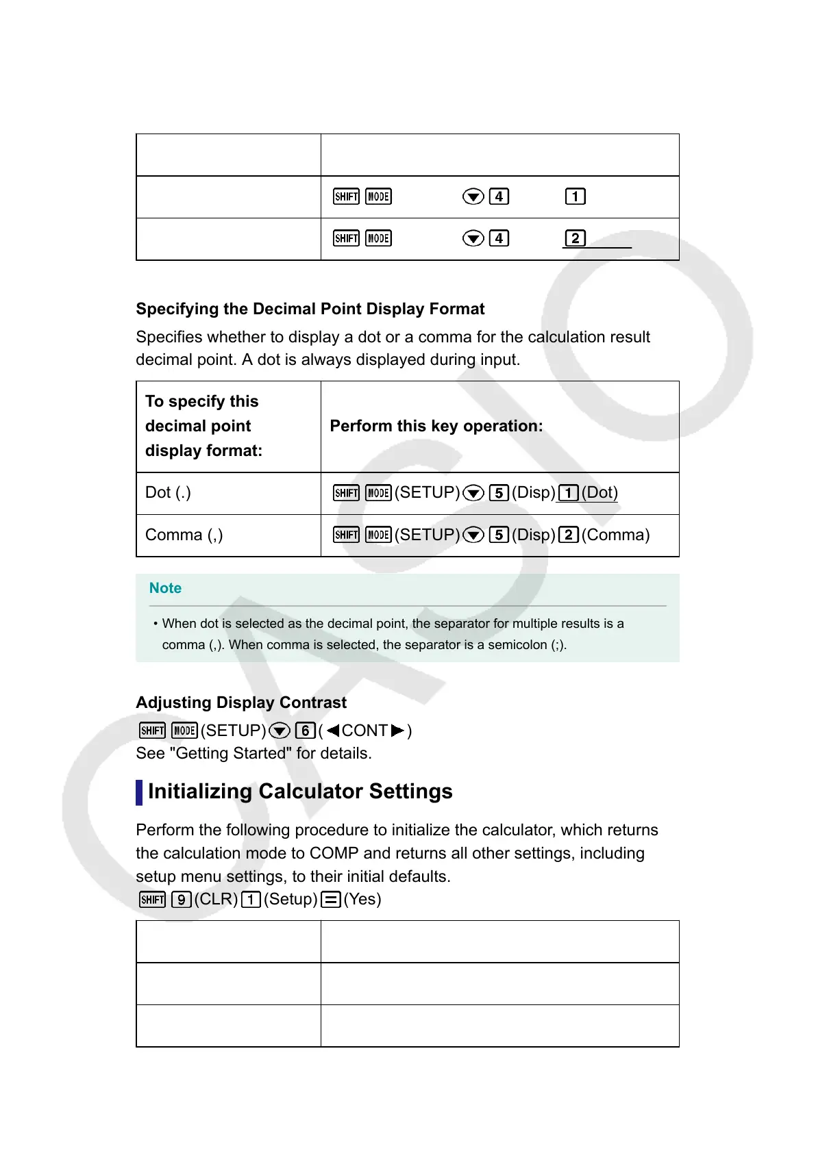 Specifies whether to display a dot or a comma for the calculation result